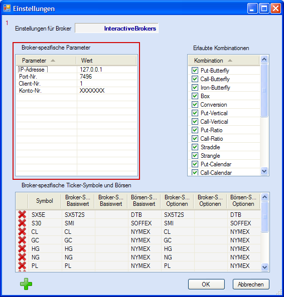 7. Stellen Sie die „brokerspezifischen Parameter“ bis auf die „Konto-Nr.“ so ein wie in der Grafik ersichtlich