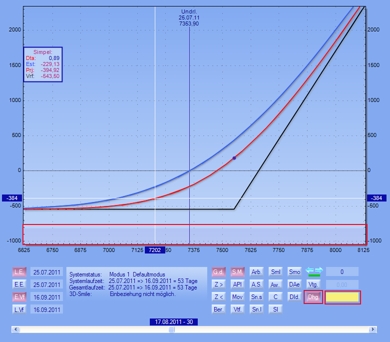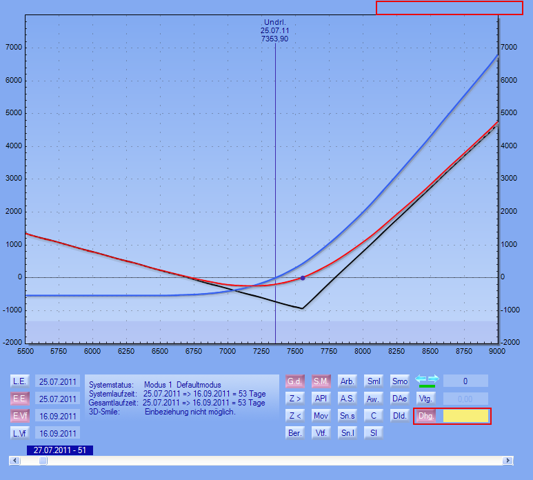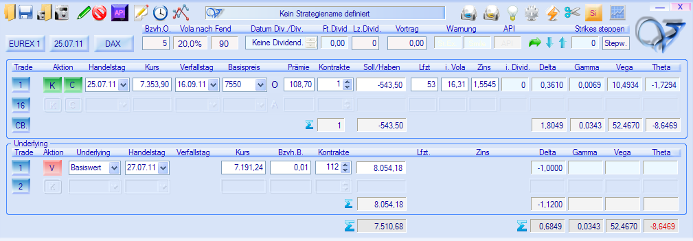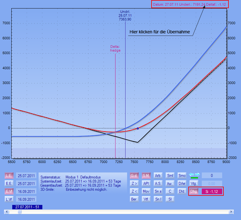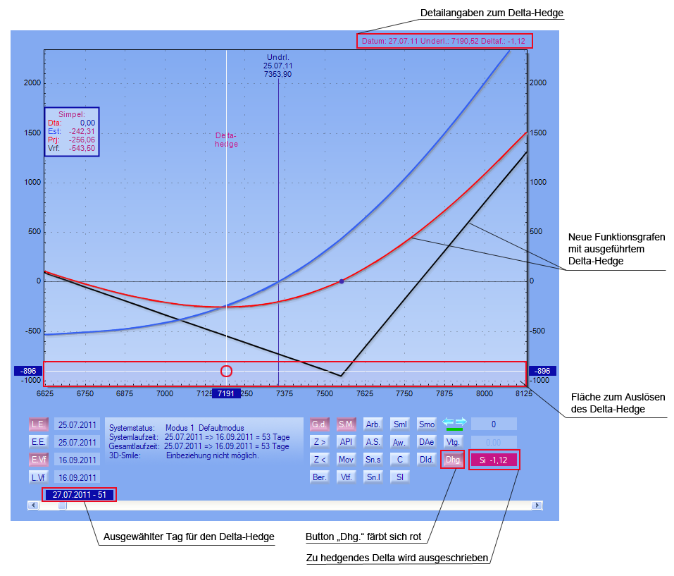 Button "Dhg." stellt die Delta-Hedge Funktion "scharf".