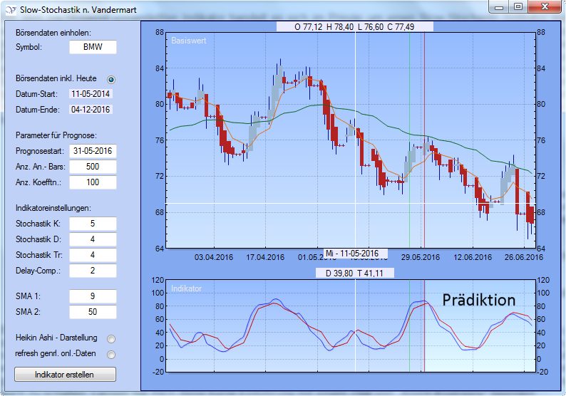 der Prädiktion zu testen, kann zu jedem Zeitpunkt im Chart die Prädiktion getestet werden (da die Zukunft bekannt).